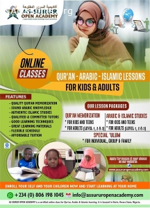As-Surur Open Academy is a certified online class for Qur'an, Arabic and Islamic lessons. We are based in Nigeria.It was established to assist our Muslim brothers and sisters who wish to learn or improve their knowledge in Qur'an, Arabic or Islam, or wish to train their children but have no opportunity for that due to their location or tight schedule.